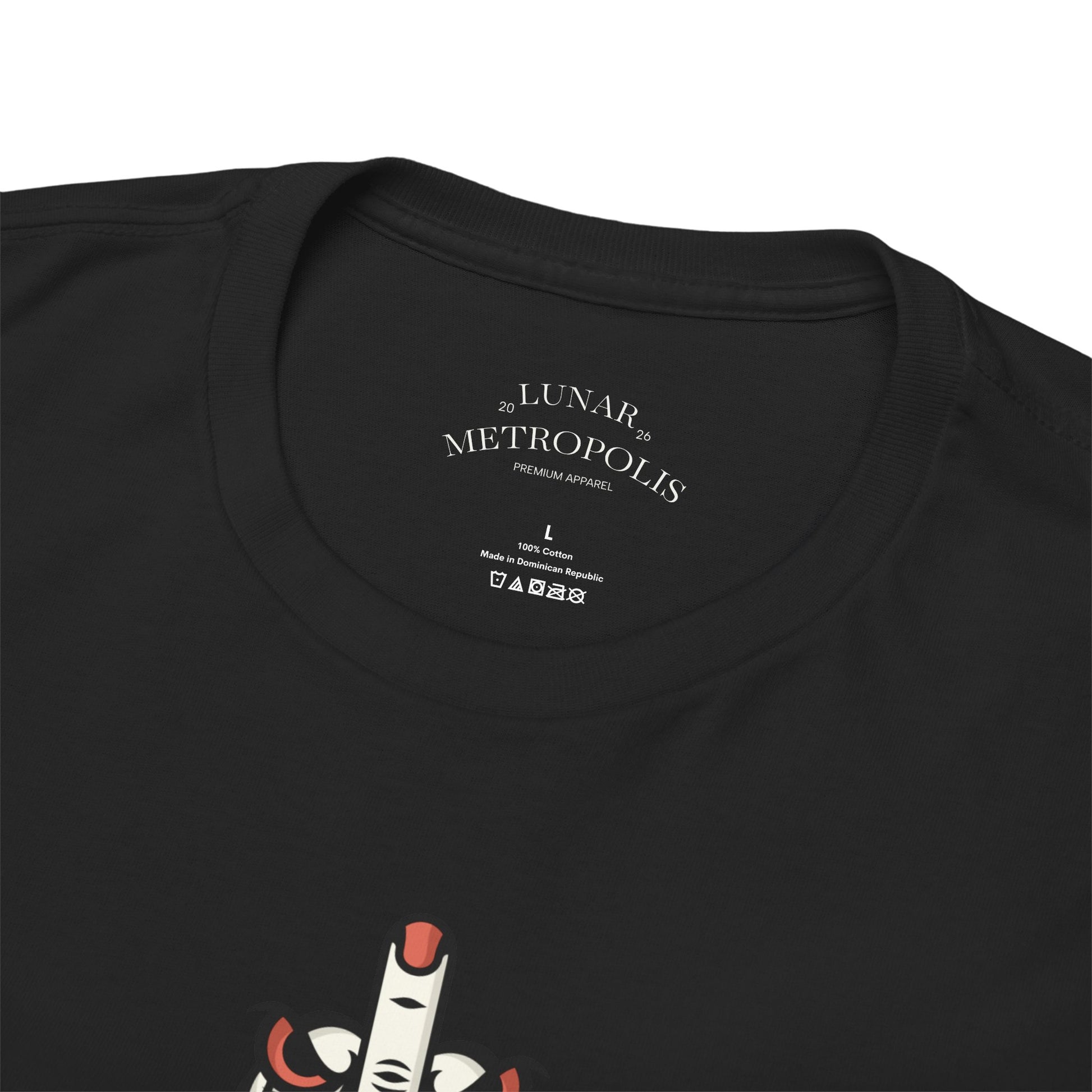- Dual printing: DTF for sleeves and inner label, DTG for main chest print — crisp, detailed artwork