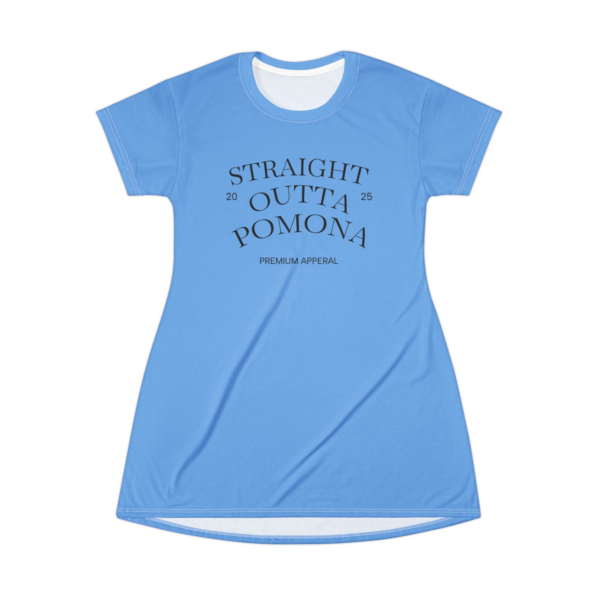 Straight Outta Pomona™ T-Shirt Dress, Comfortable Casual Outfit, Summer Dress, Stylish Lounge Wear, Gift for Trendsetters